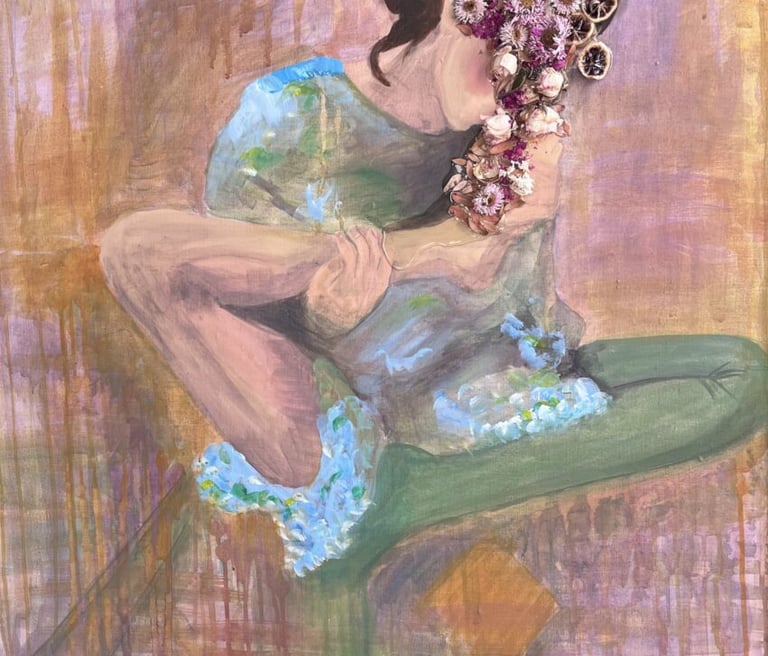 Marina Descalzi Guercio, (Madrid, 1990), de corazón y raíces argentinas, mis obras son piezas con carácter simbólico y poder evocador, en ellas se convocan la pintura, la escultura, a veces, la fotografía, junto a elementos naturales preservados, orgánicos e inorgánicos, así reivindico la unidad del todo y al humano como parte de ella, desde la paridad, sin supremacías.
